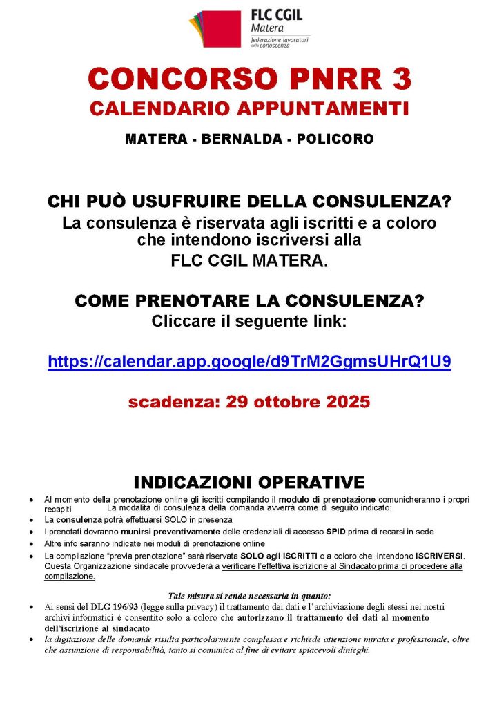 CONCORSO PNRR 3: APERTURA CALENDARIO PRENOTAZIONI